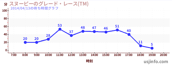 • スヌーピーのグレード・レース(TM)$B$N(B2014年04月13日の待ち時間