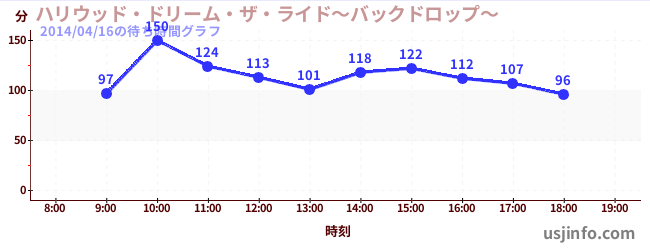 • ハリウッド・ドリーム・ザ・ライド〜バックドロップ〜$B$N(B2014年04月16日の待ち時間
