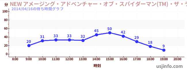 • NEW アメージング・アドベンチャー・オブ・スパイダーマン(TM)・ザ・ライド 4K3D$B$N(B2014年04月16日の待ち時間