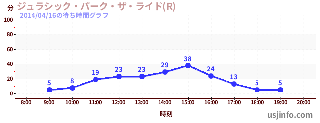 • ジュラシック・パーク・ザ・ライド(R)$B$N(B2014年04月16日の待ち時間
