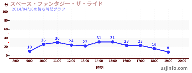 • スペース・ファンタジー・ザ・ライド$B$N(B2014年04月16日の待ち時間