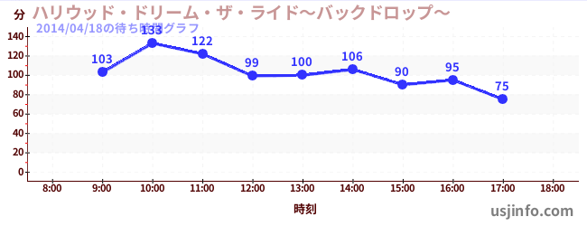 • ハリウッド・ドリーム・ザ・ライド〜バックドロップ〜$B$N(B2014年04月18日の待ち時間