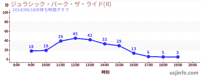 • ジュラシック・パーク・ザ・ライド(R)$B$N(B2014年04月18日の待ち時間