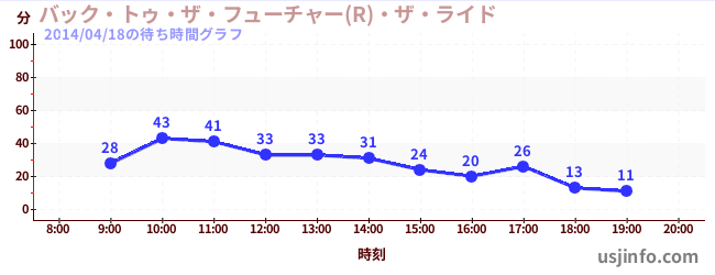 • バック・トゥ・ザ・フューチャー(R)・ザ・ライド$B$N(B2014年04月18日の待ち時間