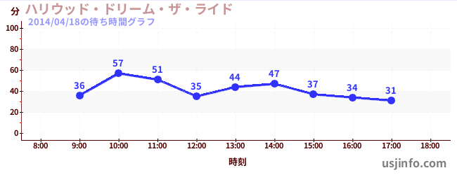 • ハリウッド・ドリーム・ザ・ライド$B$N(B2014年04月18日の待ち時間