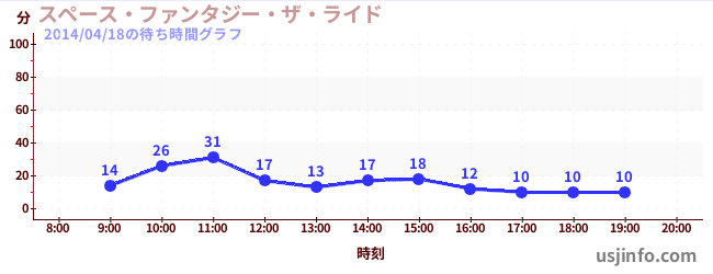 • スペース・ファンタジー・ザ・ライド$B$N(B2014年04月18日の待ち時間