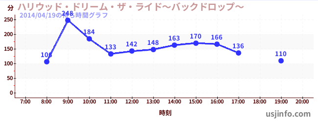 • ハリウッド・ドリーム・ザ・ライド〜バックドロップ〜$B$N(B2014年04月19日の待ち時間