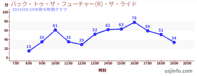 • バック・トゥ・ザ・フューチャー(R)・ザ・ライド$B$N(B2014年04月19日の待ち時間