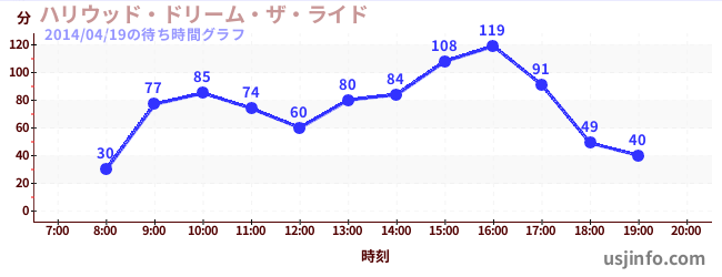 • ハリウッド・ドリーム・ザ・ライド$B$N(B2014年04月19日の待ち時間