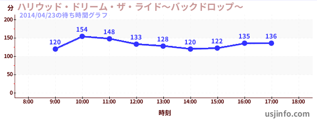 • ハリウッド・ドリーム・ザ・ライド〜バックドロップ〜$B$N(B2014年04月23日の待ち時間
