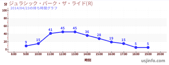 • ジュラシック・パーク・ザ・ライド(R)$B$N(B2014年04月23日の待ち時間