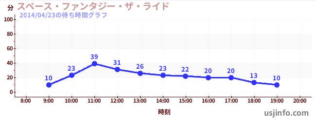 • スペース・ファンタジー・ザ・ライド$B$N(B2014年04月23日の待ち時間