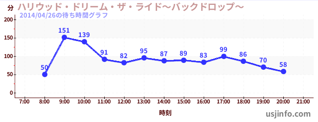 • ハリウッド・ドリーム・ザ・ライド〜バックドロップ〜$B$N(B2014年04月26日の待ち時間