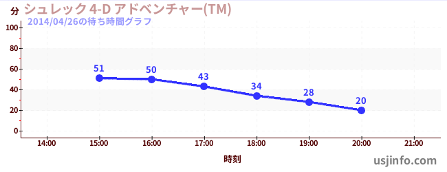 • シュレック 4-D アドベンチャー(TM)$B$N(B2014年04月26日の待ち時間