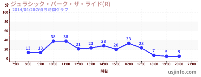 • ジュラシック・パーク・ザ・ライド(R)$B$N(B2014年04月26日の待ち時間