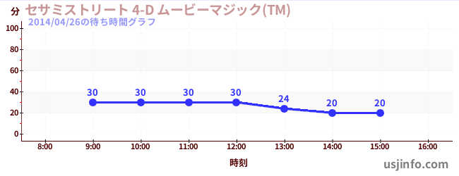 • セサミストリート 4-D ムービーマジック(TM)$B$N(B2014年04月26日の待ち時間
