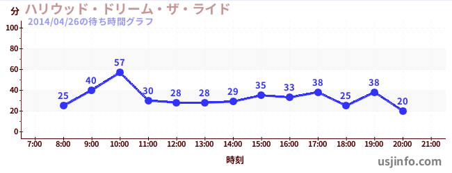 • ハリウッド・ドリーム・ザ・ライド$B$N(B2014年04月26日の待ち時間