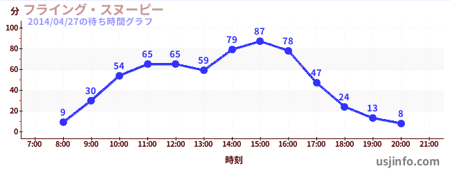• フライング・スヌーピー$B$N(B2014年04月27日の待ち時間