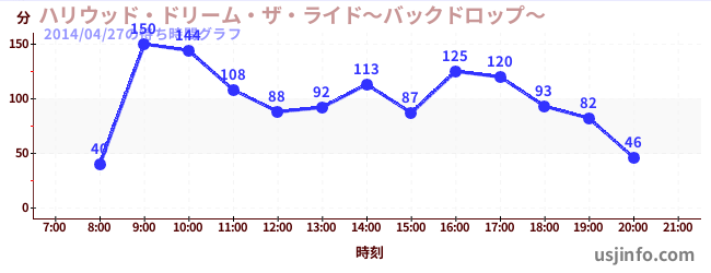 • ハリウッド・ドリーム・ザ・ライド〜バックドロップ〜$B$N(B2014年04月27日の待ち時間