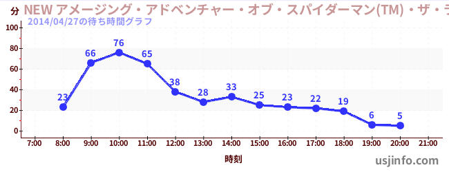 • NEW アメージング・アドベンチャー・オブ・スパイダーマン(TM)・ザ・ライド 4K3D$B$N(B2014年04月27日の待ち時間