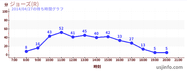 • ジョーズ(R)$B$N(B2014年04月27日の待ち時間