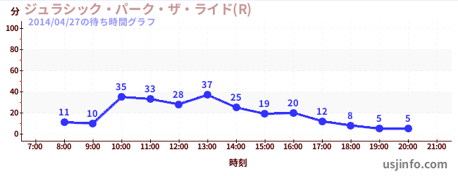 • ジュラシック・パーク・ザ・ライド(R)$B$N(B2014年04月27日の待ち時間