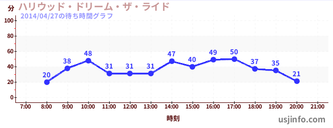 • ハリウッド・ドリーム・ザ・ライド$B$N(B2014年04月27日の待ち時間