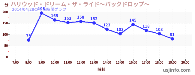 • ハリウッド・ドリーム・ザ・ライド〜バックドロップ〜$B$N(B2014年04月28日の待ち時間