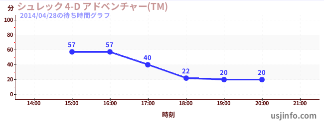 • シュレック 4-D アドベンチャー(TM)$B$N(B2014年04月28日の待ち時間