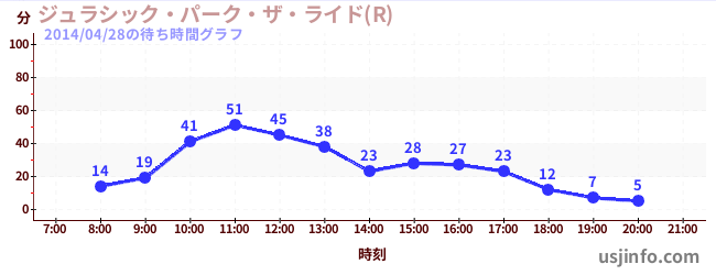 • ジュラシック・パーク・ザ・ライド(R)$B$N(B2014年04月28日の待ち時間