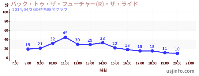• バック・トゥ・ザ・フューチャー(R)・ザ・ライド$B$N(B2014年04月28日の待ち時間