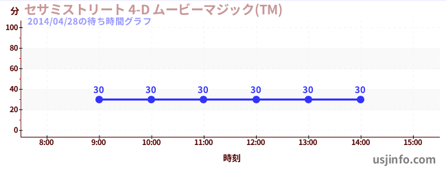 • セサミストリート 4-D ムービーマジック(TM)$B$N(B2014年04月28日の待ち時間