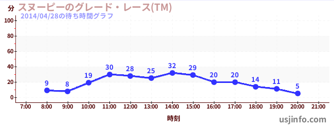 • スヌーピーのグレード・レース(TM)$B$N(B2014年04月28日の待ち時間