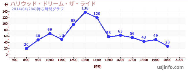 • ハリウッド・ドリーム・ザ・ライド$B$N(B2014年04月28日の待ち時間