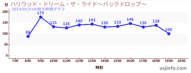 • ハリウッド・ドリーム・ザ・ライド〜バックドロップ〜$B$N(B2014年05月01日の待ち時間