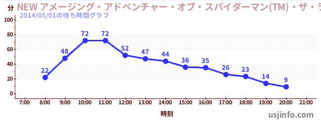• NEW アメージング・アドベンチャー・オブ・スパイダーマン(TM)・ザ・ライド 4K3D$B$N(B2014年05月01日の待ち時間