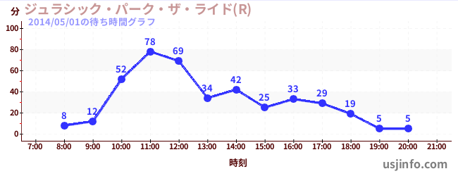 • ジュラシック・パーク・ザ・ライド(R)$B$N(B2014年05月01日の待ち時間