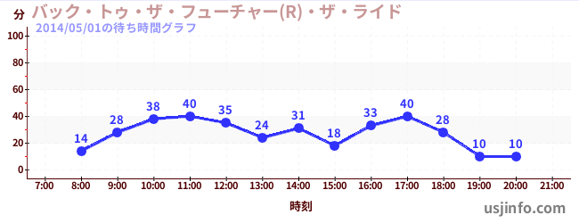 • バック・トゥ・ザ・フューチャー(R)・ザ・ライド$B$N(B2014年05月01日の待ち時間