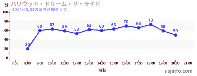 • ハリウッド・ドリーム・ザ・ライド$B$N(B2014年05月01日の待ち時間