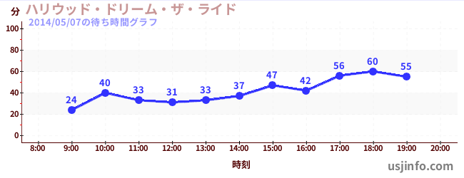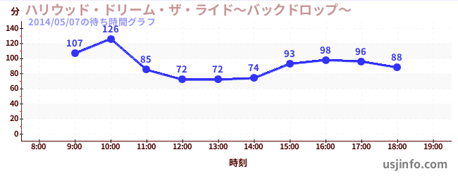 • ハリウッド・ドリーム・ザ・ライド〜バックドロップ〜$B$N(B2014年05月07日の待ち時間