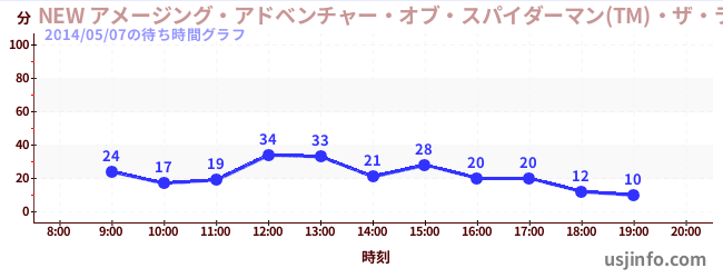 • NEW アメージング・アドベンチャー・オブ・スパイダーマン(TM)・ザ・ライド 4K3D$B$N(B2014年05月07日の待ち時間