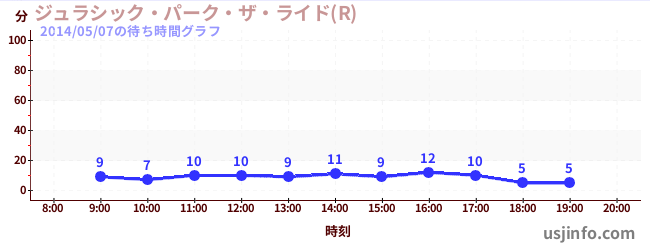 • ジュラシック・パーク・ザ・ライド(R)$B$N(B2014年05月07日の待ち時間
