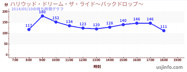 • ハリウッド・ドリーム・ザ・ライド〜バックドロップ〜$B$N(B2014年05月10日の待ち時間