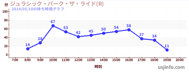 • ジュラシック・パーク・ザ・ライド(R)$B$N(B2014年05月10日の待ち時間