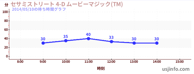 • セサミストリート 4-D ムービーマジック(TM)$B$N(B2014年05月10日の待ち時間