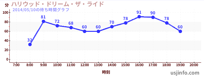 • ハリウッド・ドリーム・ザ・ライド$B$N(B2014年05月10日の待ち時間