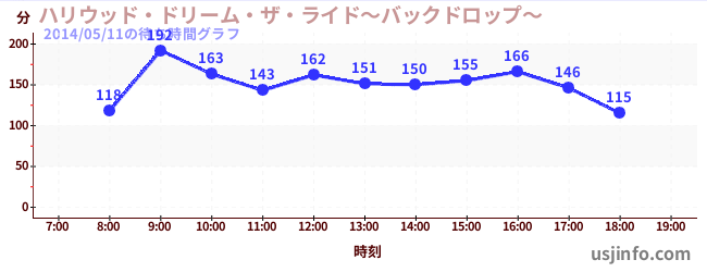 • ハリウッド・ドリーム・ザ・ライド〜バックドロップ〜$B$N(B2014年05月11日の待ち時間