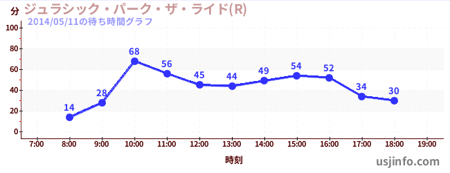 • ジュラシック・パーク・ザ・ライド(R)$B$N(B2014年05月11日の待ち時間