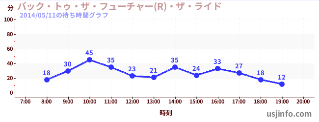 • バック・トゥ・ザ・フューチャー(R)・ザ・ライド$B$N(B2014年05月11日の待ち時間