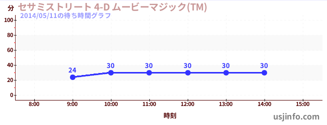 • セサミストリート 4-D ムービーマジック(TM)$B$N(B2014年05月11日の待ち時間
